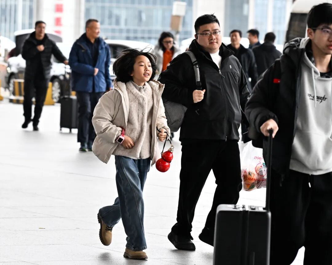2月6日,在南京南站,小一又友奴才家东谈主准备进站搭车。新华社记者 季春鹏 摄